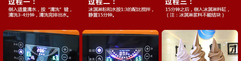 BQL-828立式冰淇淋機(jī),1.選用國際牌壓縮機(jī),輔以旭眾精湛工藝,大大縮短冰淇淋成型時間,高效節(jié)能;2.全新液晶智能觸控面板,簡單明了,多功能易操作;3.全新升級專業(yè)膨化泵,膨化率高,產(chǎn)量增加30%;4.一鍵清洗功能,省時方便;5.主要部件采用不銹鋼材質(zhì),時尚美觀,持久耐用;6.先進(jìn)的機(jī)械攪拌系統(tǒng),機(jī)器運(yùn)行穩(wěn)定可靠,低噪音,產(chǎn)品口感爽滑細(xì)嫩。