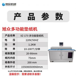 XZ-170多功能墊紙機(jī),適用于大規(guī)模生產(chǎn)多功能墊紙機(jī)適用于包子、饅頭、豆包等需要墊包紙的食。伺服控制、墊紙長(zhǎng)度可調(diào)整。高效墊紙告別人工旭眾牌ⅩZ-170多功能墊紙機(jī)適用于規(guī)模生產(chǎn)的食品企業(yè)制作包子機(jī)、饅頭等食品的自動(dòng)墊包紙?jiān)O(shè)備。